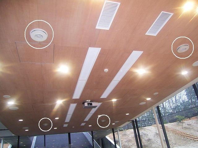 ⑤ 黒塗装された天井になじむようにファンも黒塗装して配置しています。