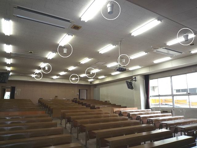 ② 階段教室の動線部(通路)上部天井に配置しています。