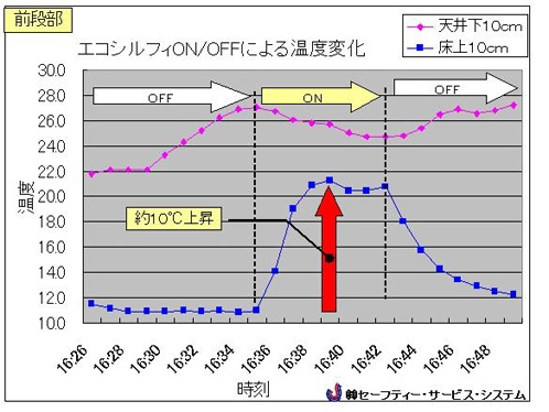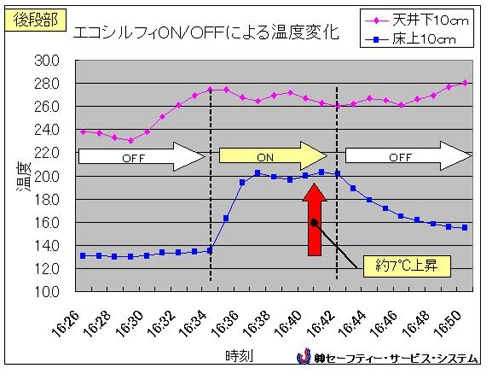 エコシルフィの広がりにくい直線的な気流は下部の着席学生に