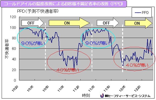 寒さで不快適と感じられるお客様の割合が半分以下の売場に環境改善され、リラックスしてゆっくりお買物いただける環境にすこし近づきました。