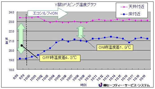 熱源が石油ストーブ1台であったために床温度の上昇は1.9℃にとどまりましたが、確実に床温度を上昇させております。