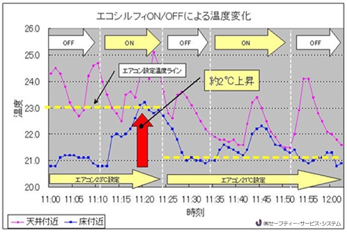 従ってエアコン21℃運転+エコシルフィ≒エアコンのみ23℃運転