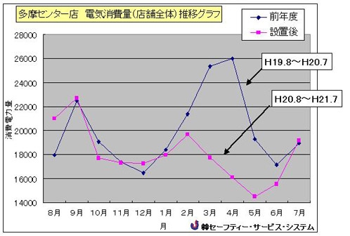 店舗全体の総電力消費量が前年比約11%の削減となっています。